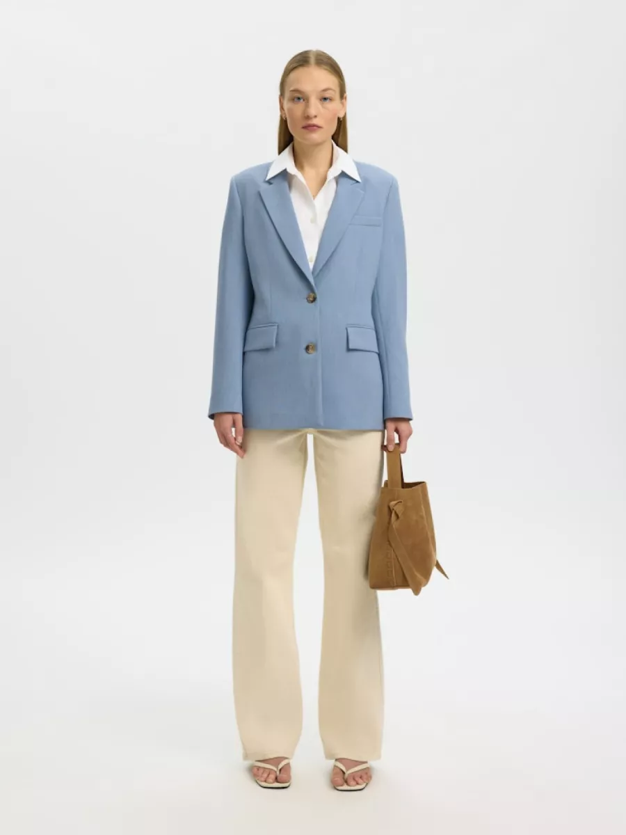 Selected Femme – SLWRITA LS CLASSIC BLAZER MEL NOOS – 16094203 – Dusty Blue