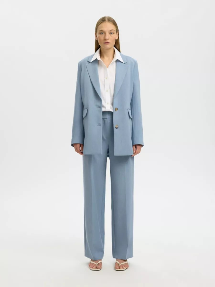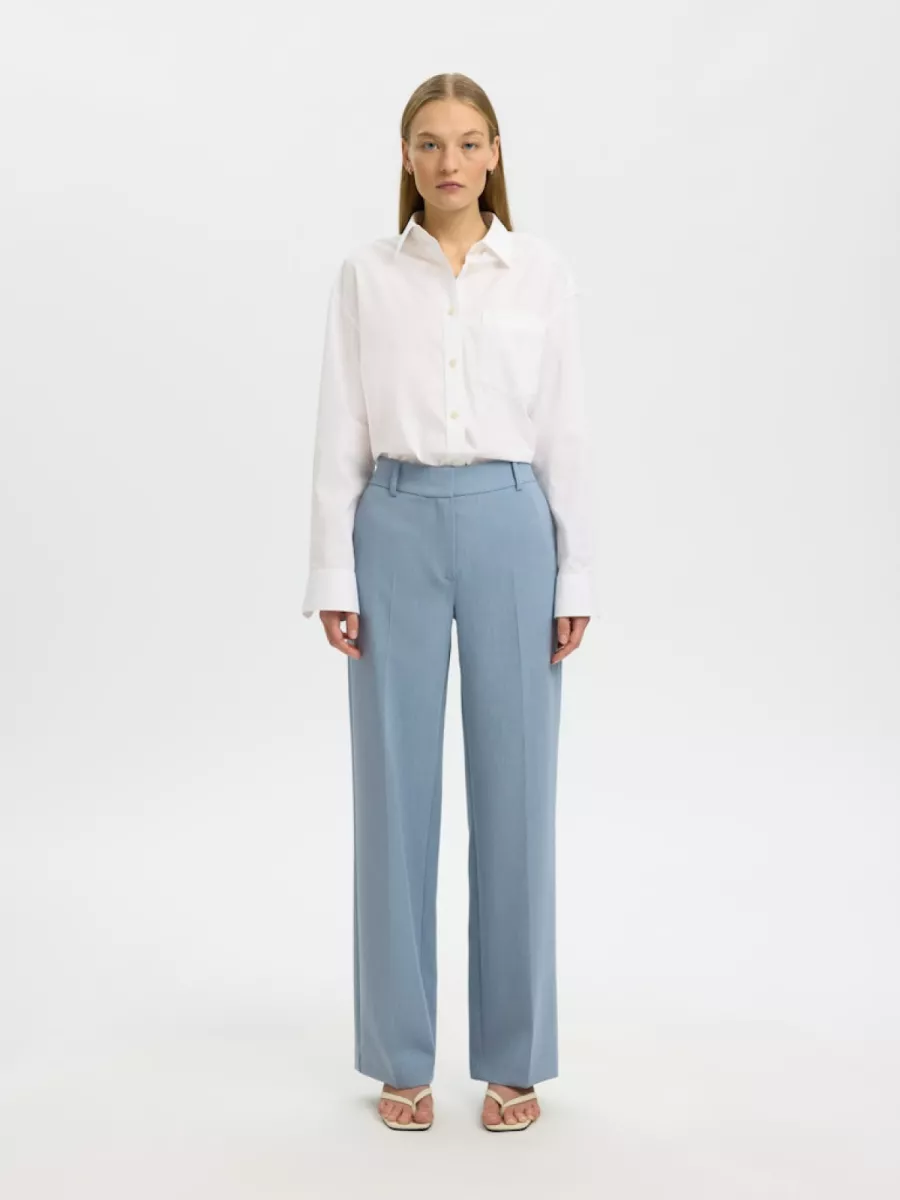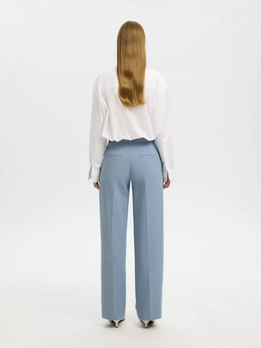 Selected Femme – SLWRITA MW WIDE PANT MEL NOOS – 16094206 – Dusty Blue