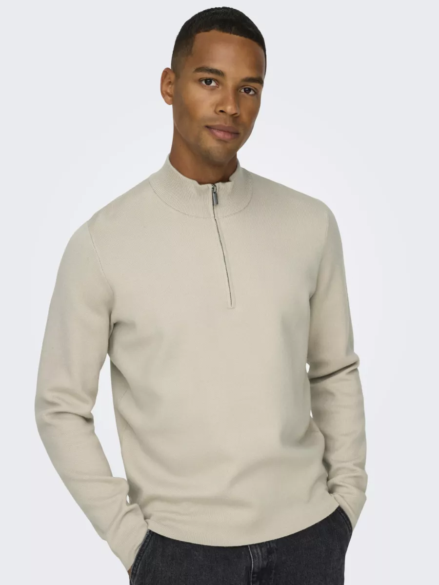 SONS – ONSCOOPER HALF ZIP HIGH NECK KNIT N – 22032411 – Silver lining