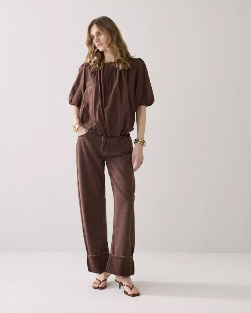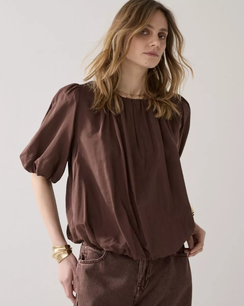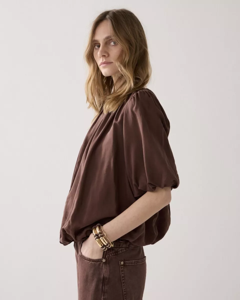 Summum – Top balloon sleeves viscose cotton – 2s3442-12370 – 713 Coffee