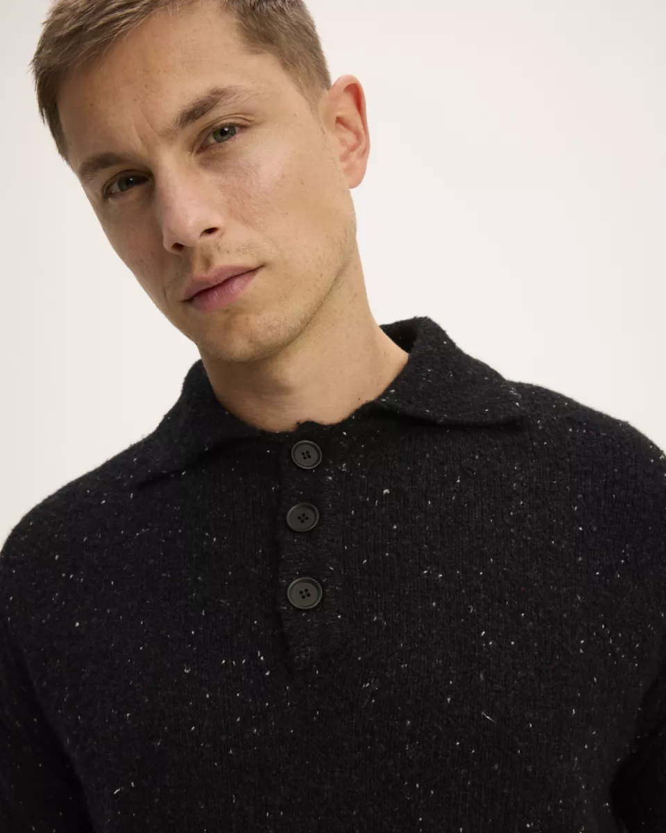Ribgebreide polo met lange mouwen, gemaakt van gemêleerd nappygaren. Deze stijl is gemaakt in Italië.
