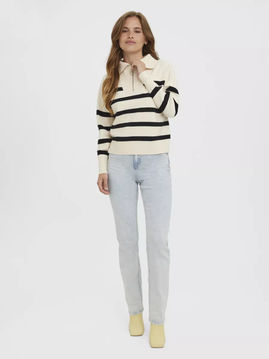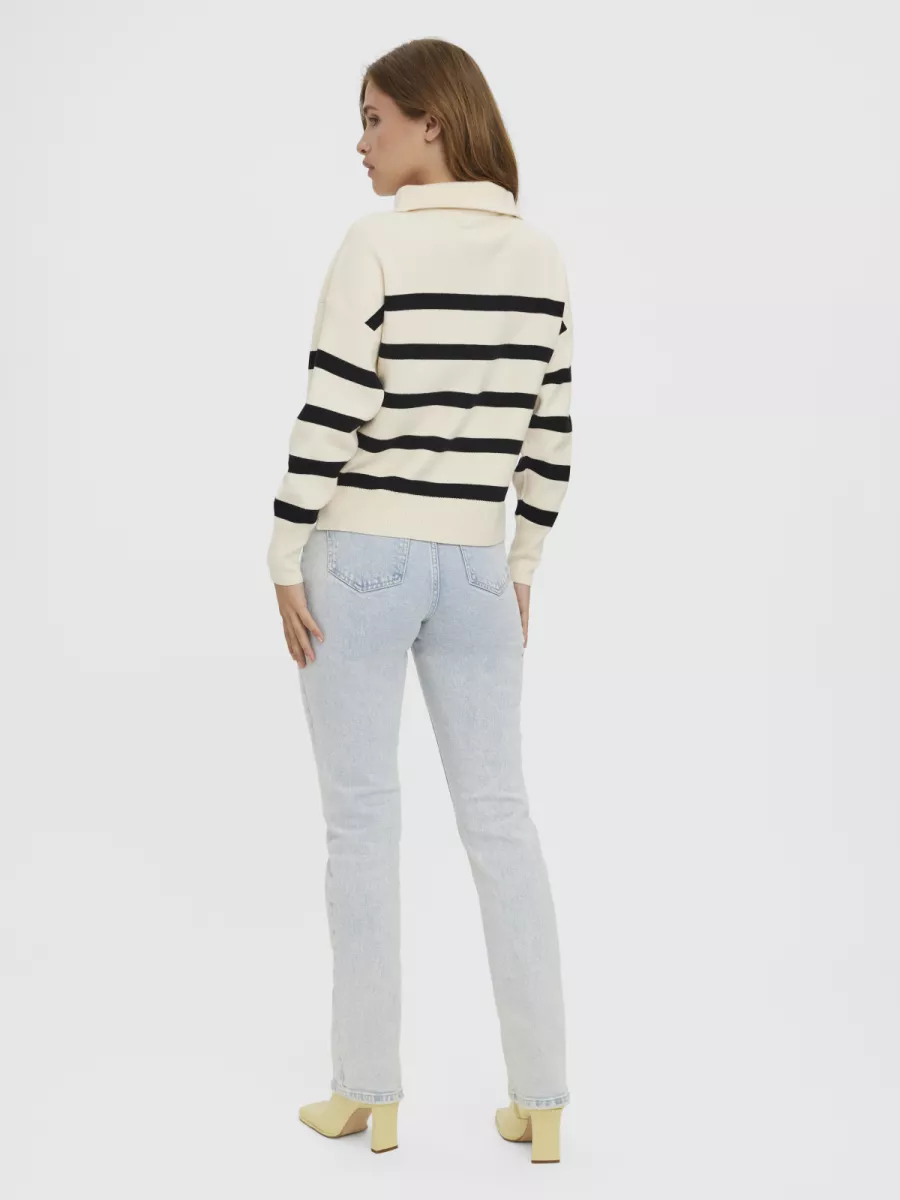VERO MODA – VMSABA STRIPE LS HIGHNECK BLOUSE GA – 10269246 – Birch Stripes Black