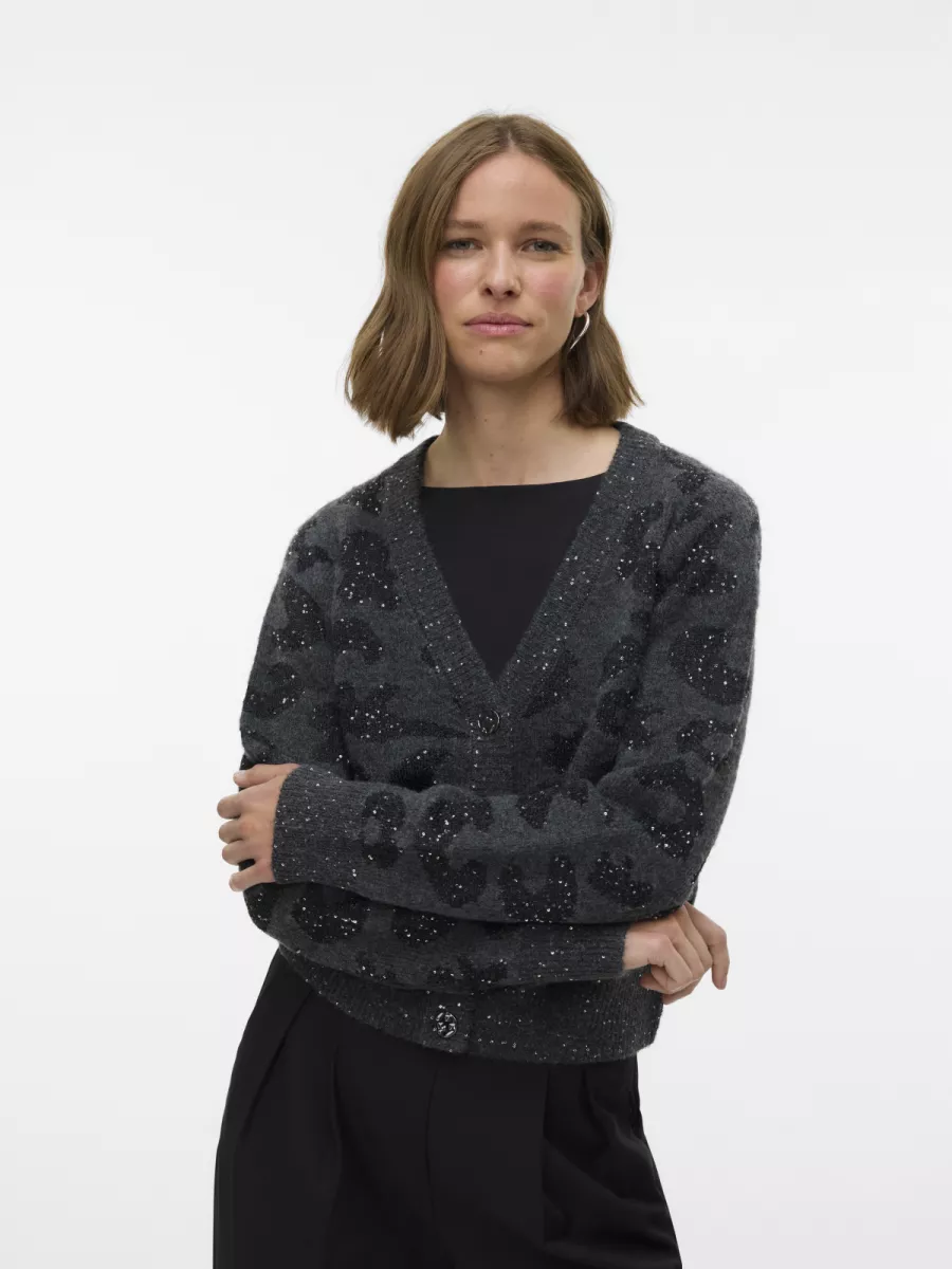 VERO MODA – VMZUZU LS V-NECK CARDIGAN – 10339337 – Dark Grey Melange