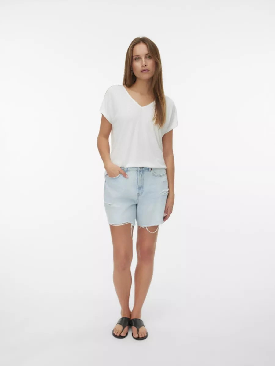 VERO MODA – VMJACKIE S/L V-NECK TOP JRS BTQ – 10342229 – Snow White