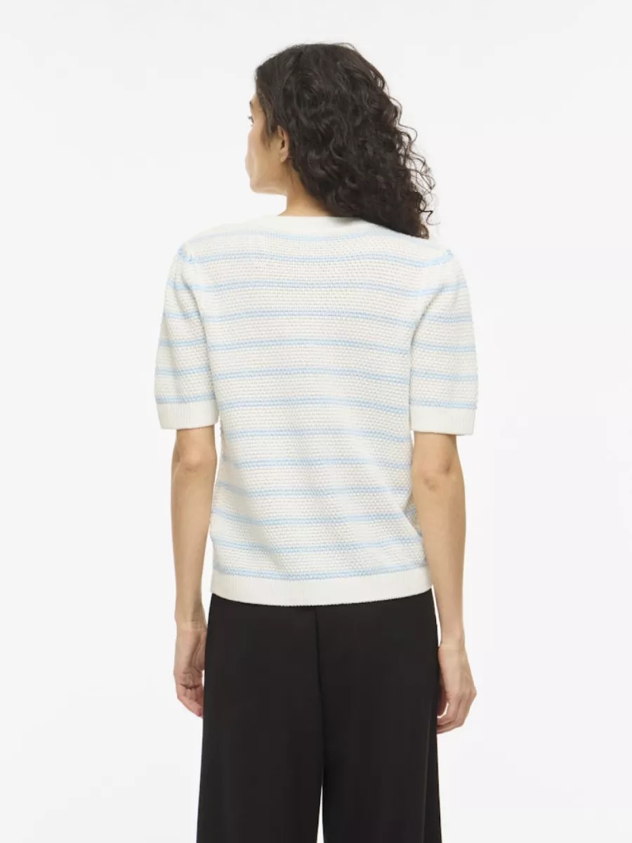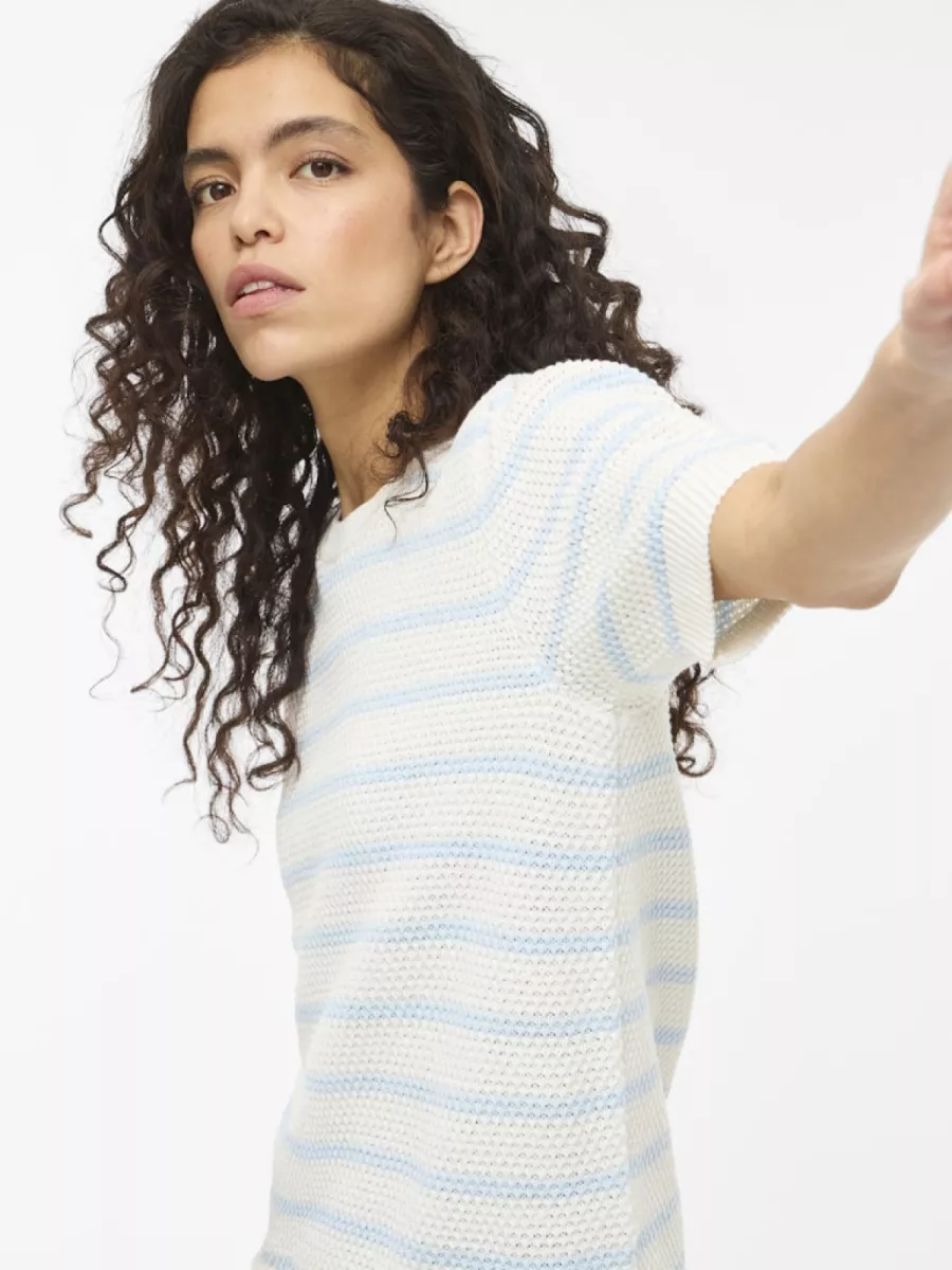 VILA – VIDALO O-NECK S/S STRIPE KNIT-NOOS – 14106601 – White Alyssum/Nantucket