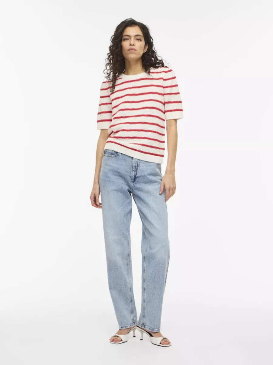 VILA – VIDALO O-NECK S/S STRIPE KNIT-NOOS – 14106601 – White Alyssum