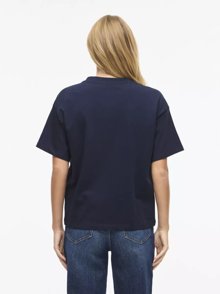 VILA – VIMONIE HEART O-NECK S/S TOP – 14113596 – Navy Blazer