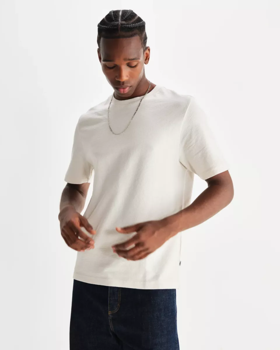 Wij beschouwen onze Dean als het perfecte, alledaagse T-shirt. Het is gemaakt van exclusieve, getextureerde biologische jersey van 280 g, wat resulteert in een hoogwaardige kwaliteit en een zacht gevoel. Deze ecru kleurstelling is een must-have voor dit seizoen.