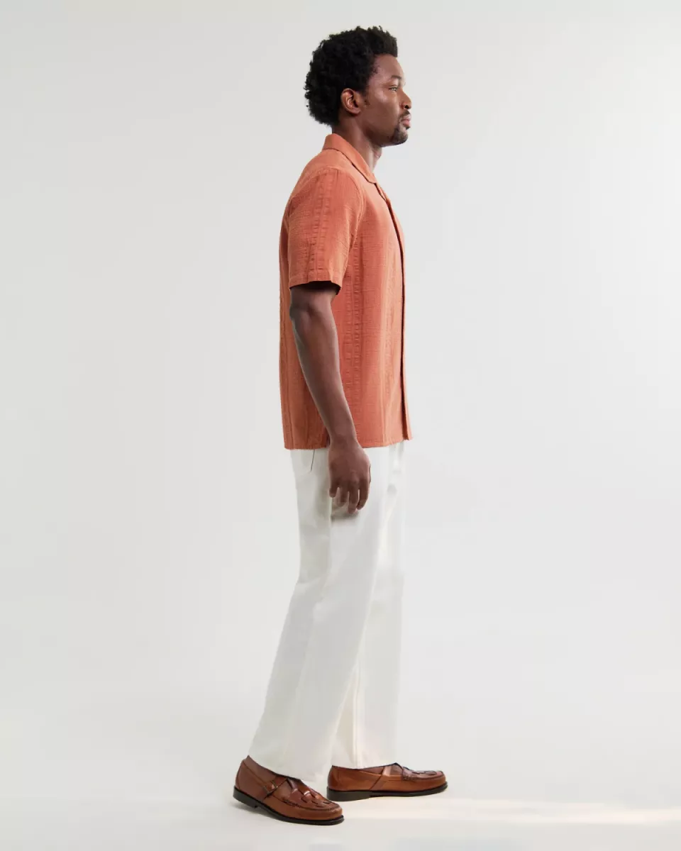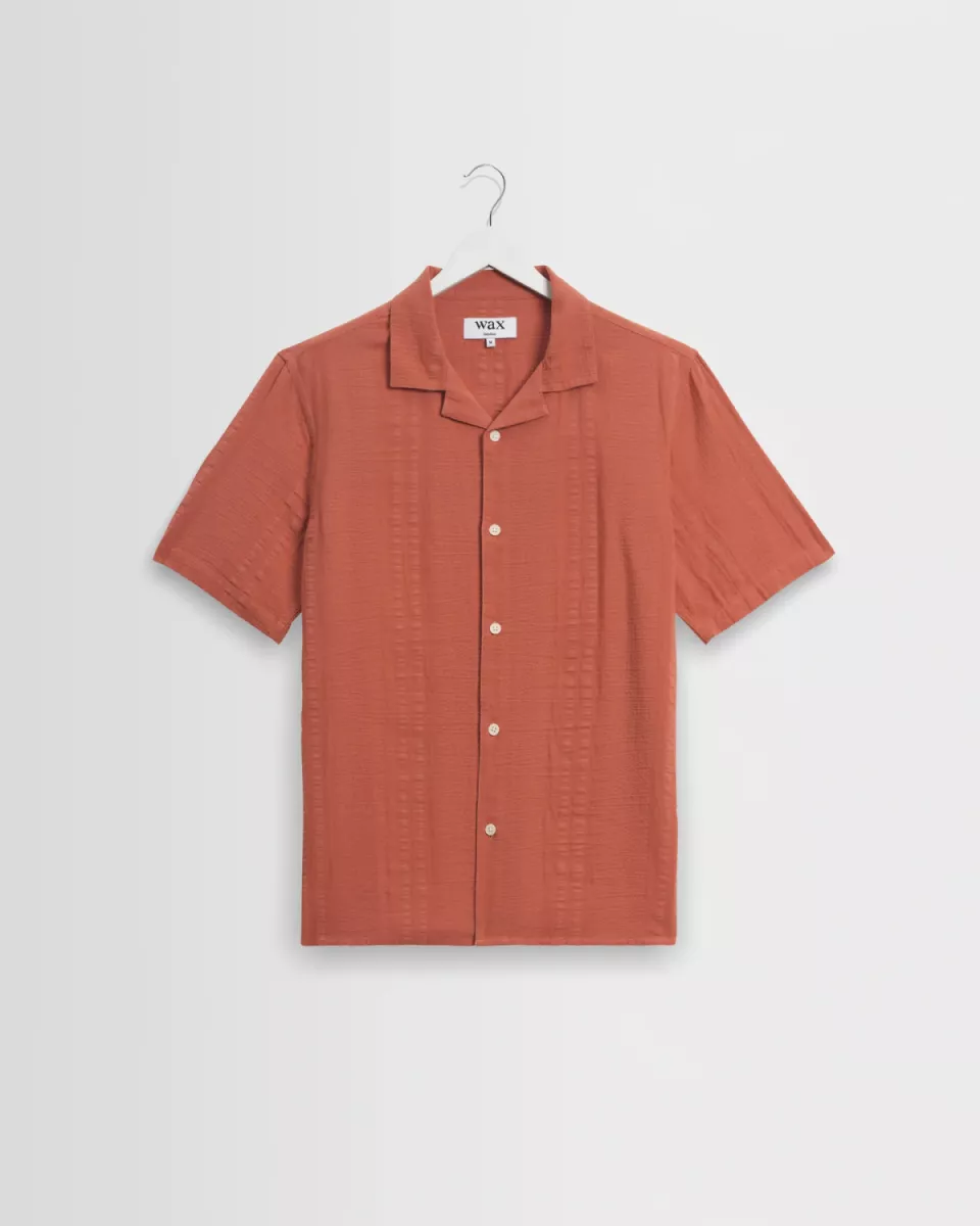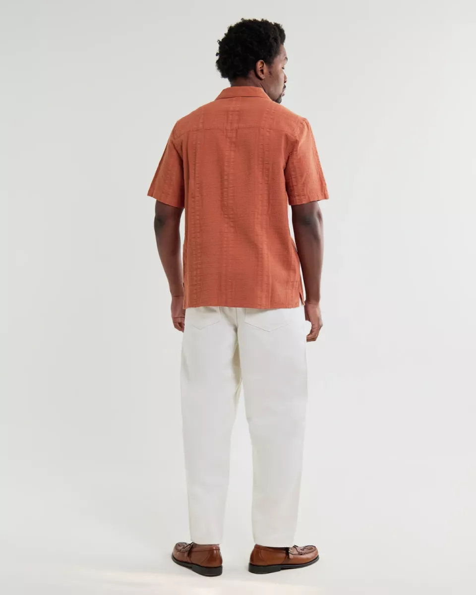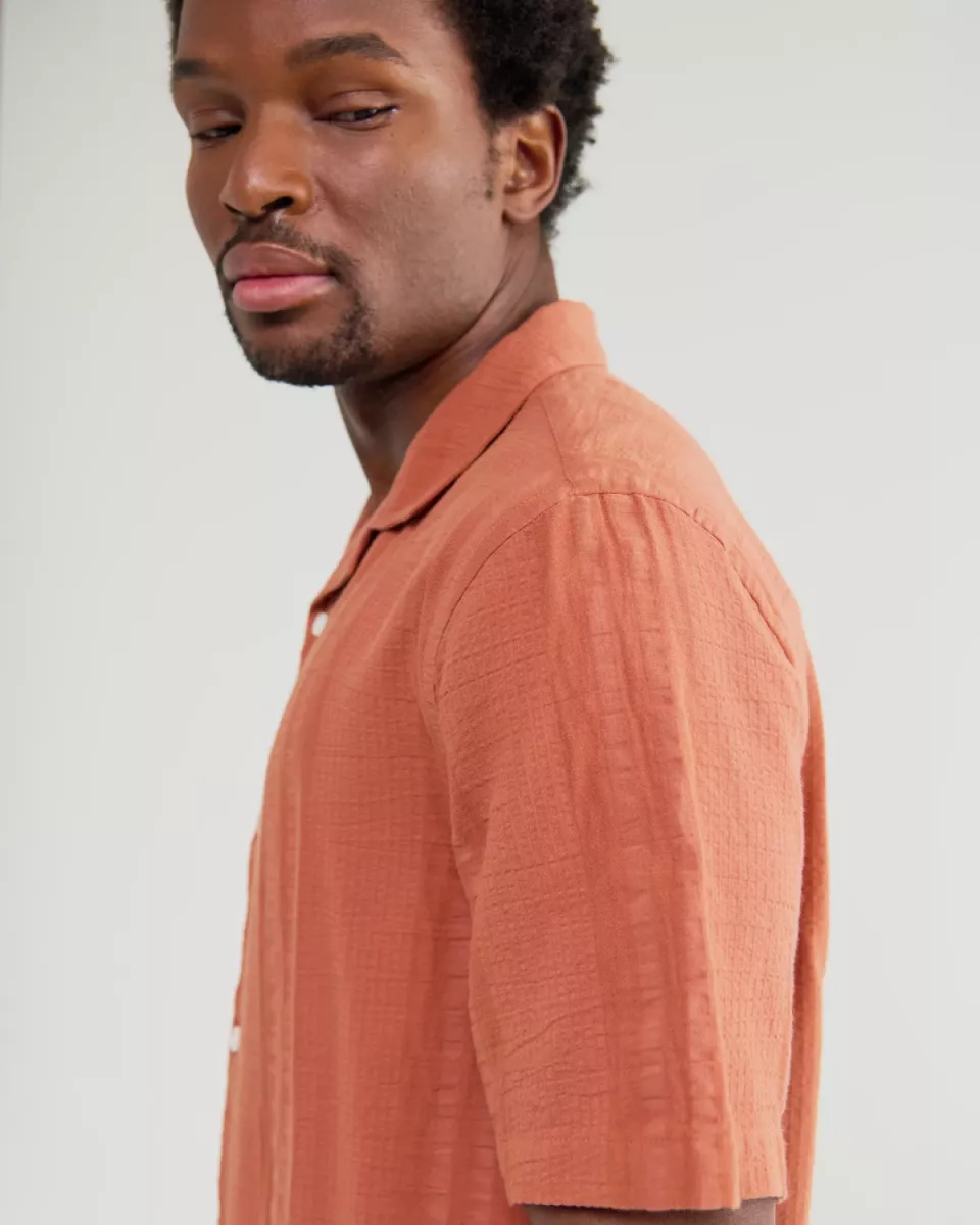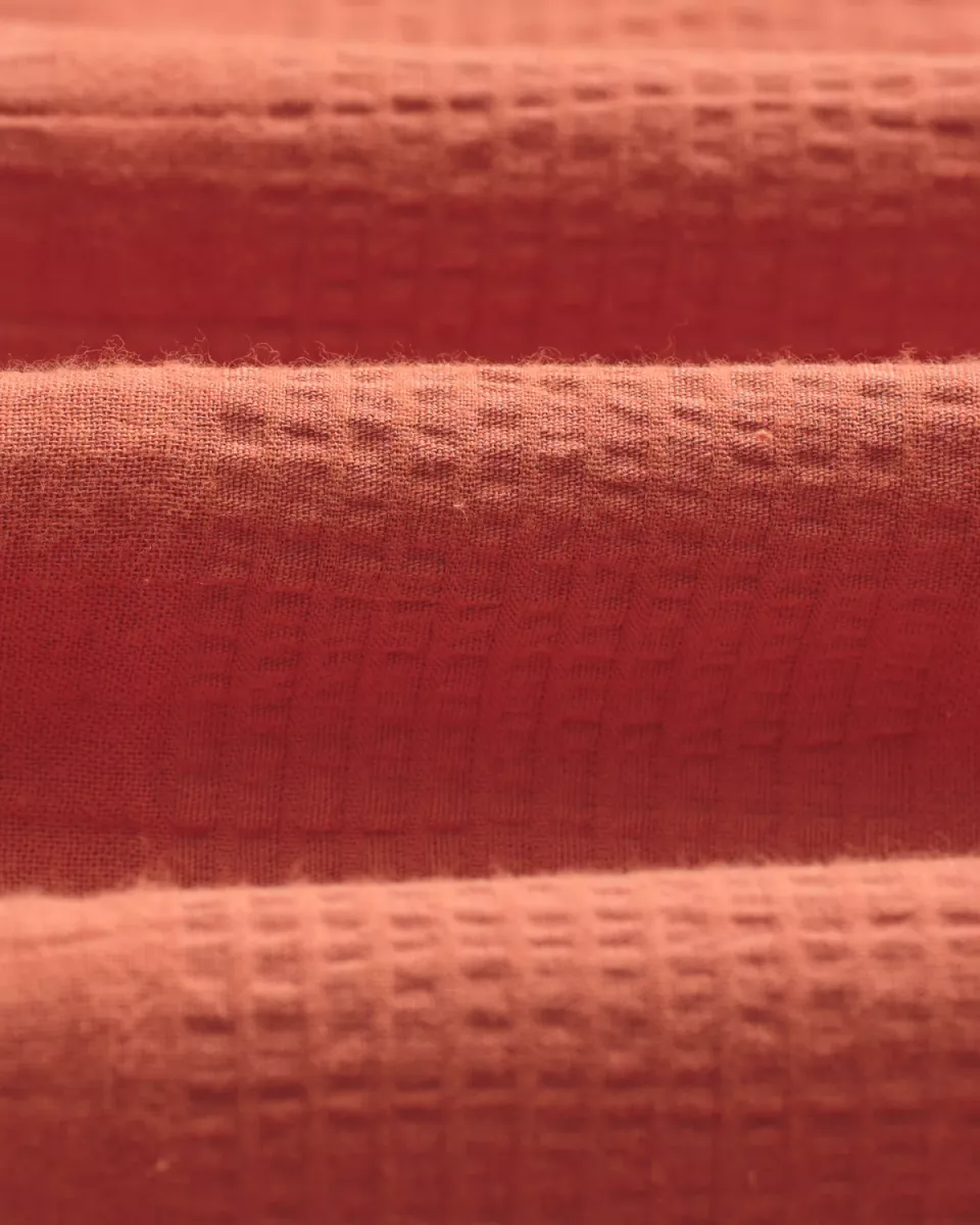 De Didcot is terug in een dubbelgeweven seersuckerstof van 100% katoen in verschillende tinten. De stof heeft onregelmatige, gestructureerde strepen voor een subtiele diepte en een luchtig, licht gevoel – ideaal voor warm weer.