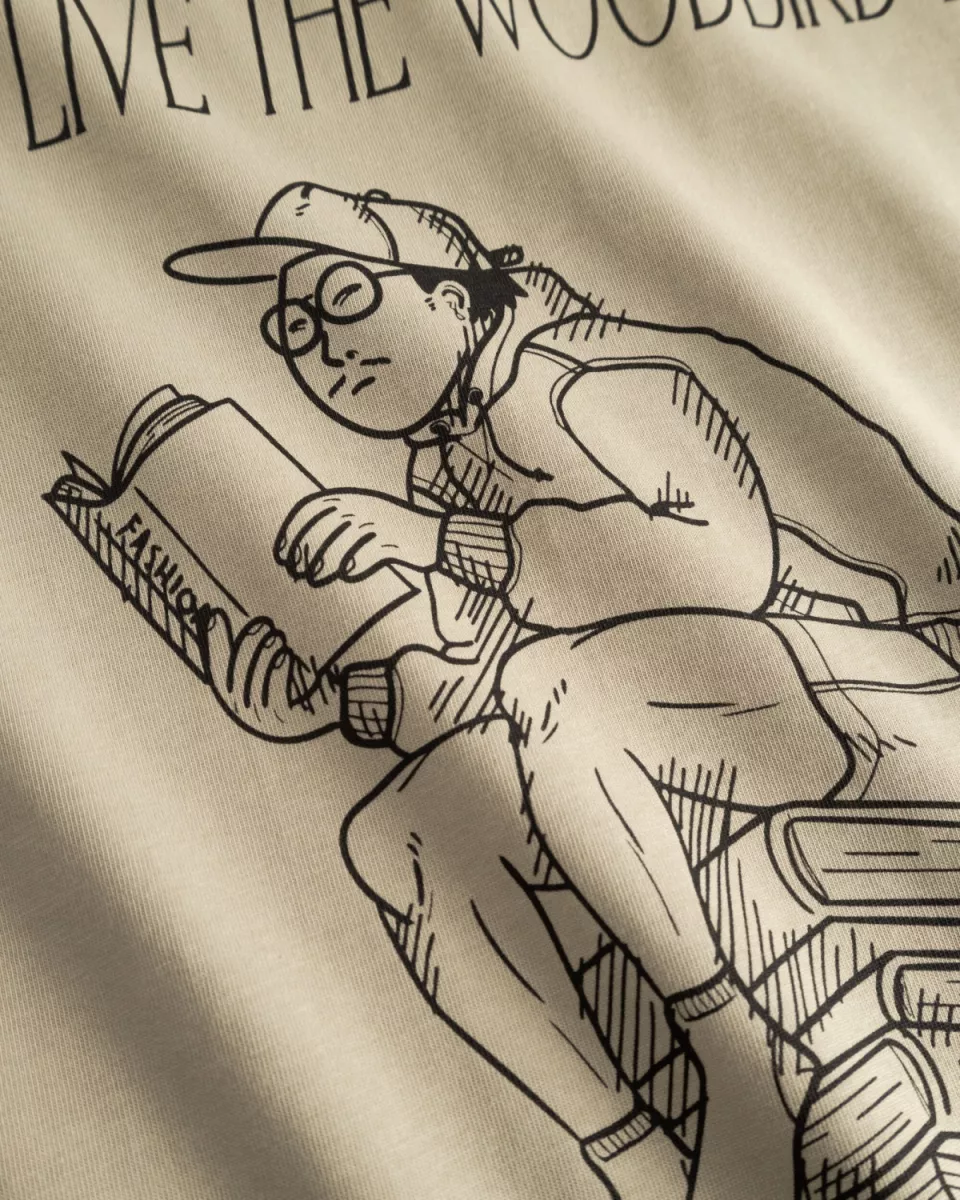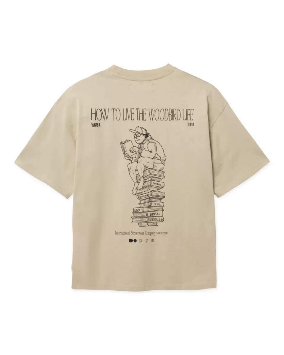 Deze Woodbird tee heeft een casual fit en een illustrated stacked-book design met een lifestyle-inspired print. Relaxed, creatief en easy te combineren. Gemaakt van 100% biologisch katoen voor dagelijks comfort met een bewuste touch.