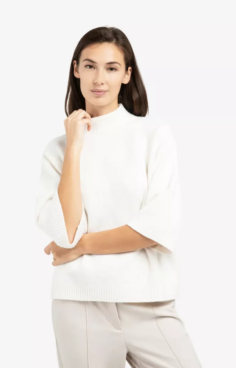 YAYA – Trui met geribde driekwart mou; Acrylic/Polyamide/Cotton/Elastane; 100022 – 01-000437-601 – 100022