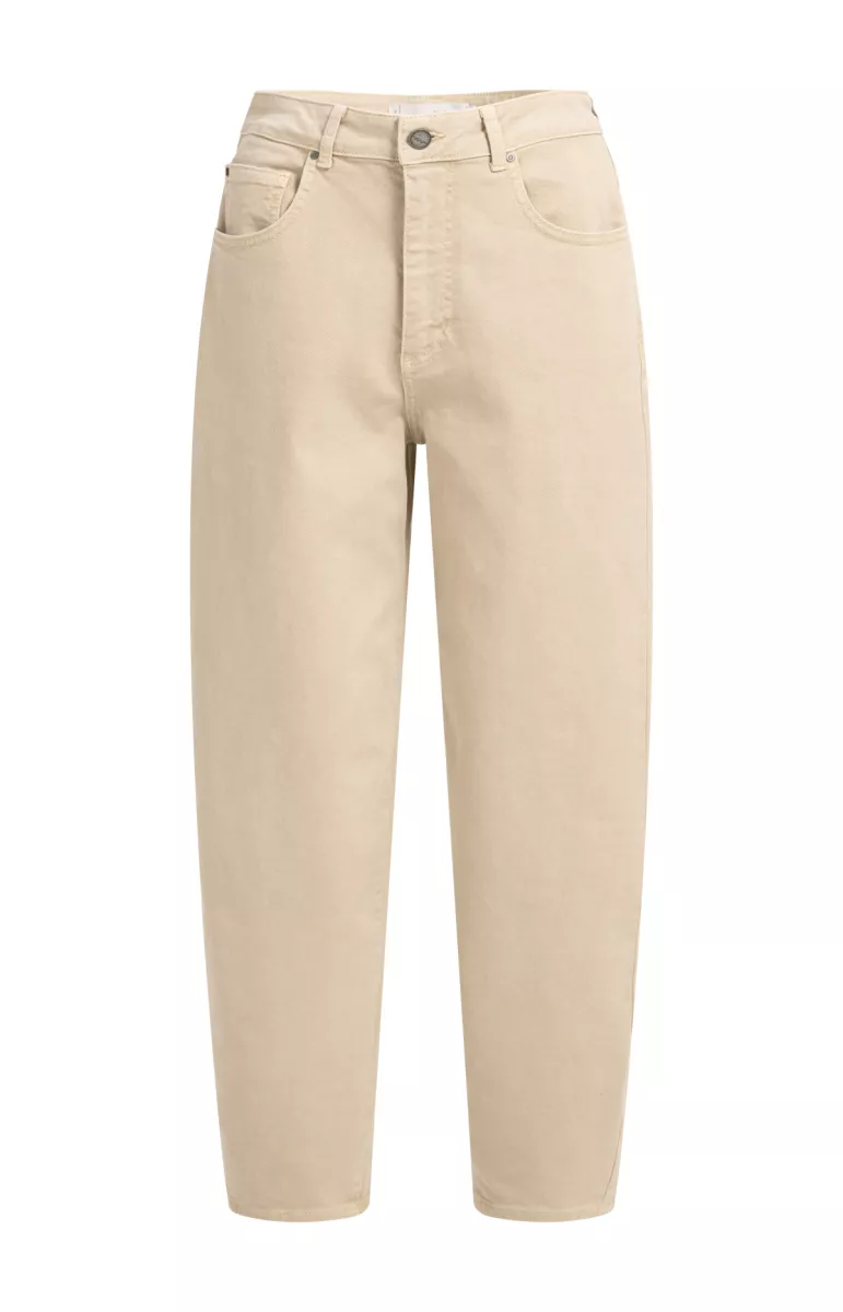 Deze jeans is uitgevoerd in een comfortabele denimkwaliteit en heeft een hoge taille en een losvallende barrel fit. De broek is voorzien van opvallende naden aan de achterkant, steekzakken voor en opgestikte achterzakken. De taps toelopende pijpen geven een eigentijdse look. Een stijlvol en casual item met een lichte wassing voor een zachte uitstraling.
