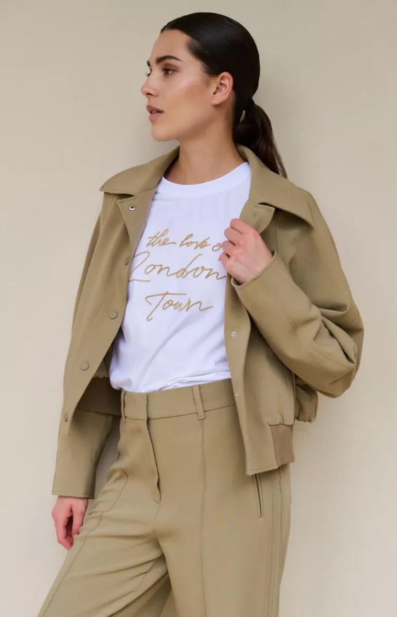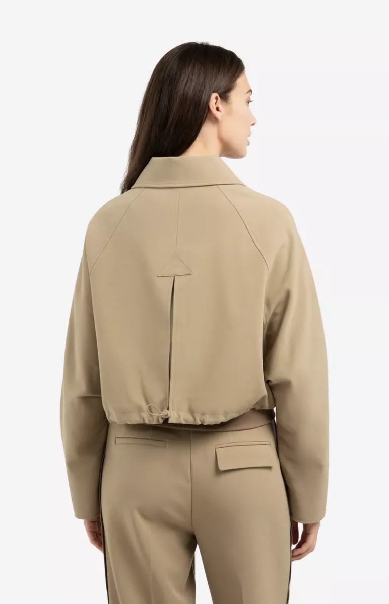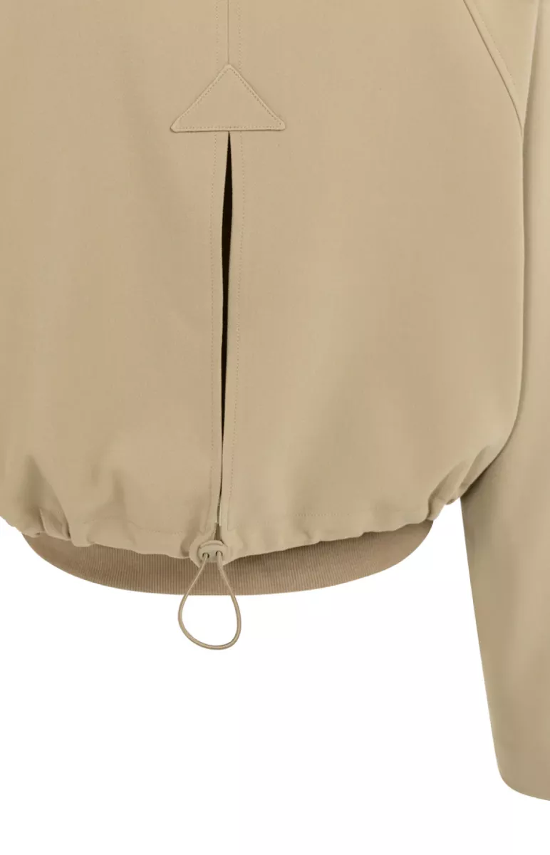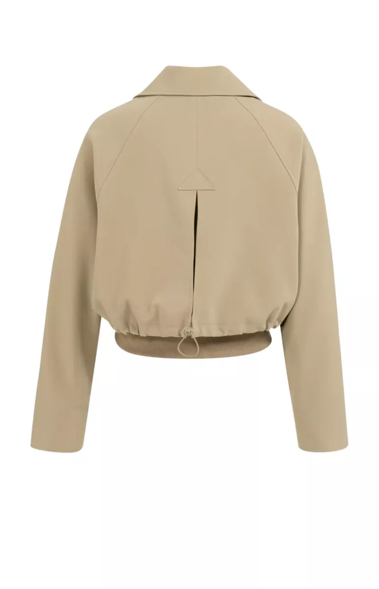 Deze korte jas is gemaakt van een gladgeweven stof. Het oversized model heeft lange mouwen, een klassieke kraag en een blinde drukknoopsluiting. De taille is voorzien van een verstelbaar koord aan de achterkant en een elastische ribboord voor een comfortabele fit. Het model is 175 cm en draagt maat 36.